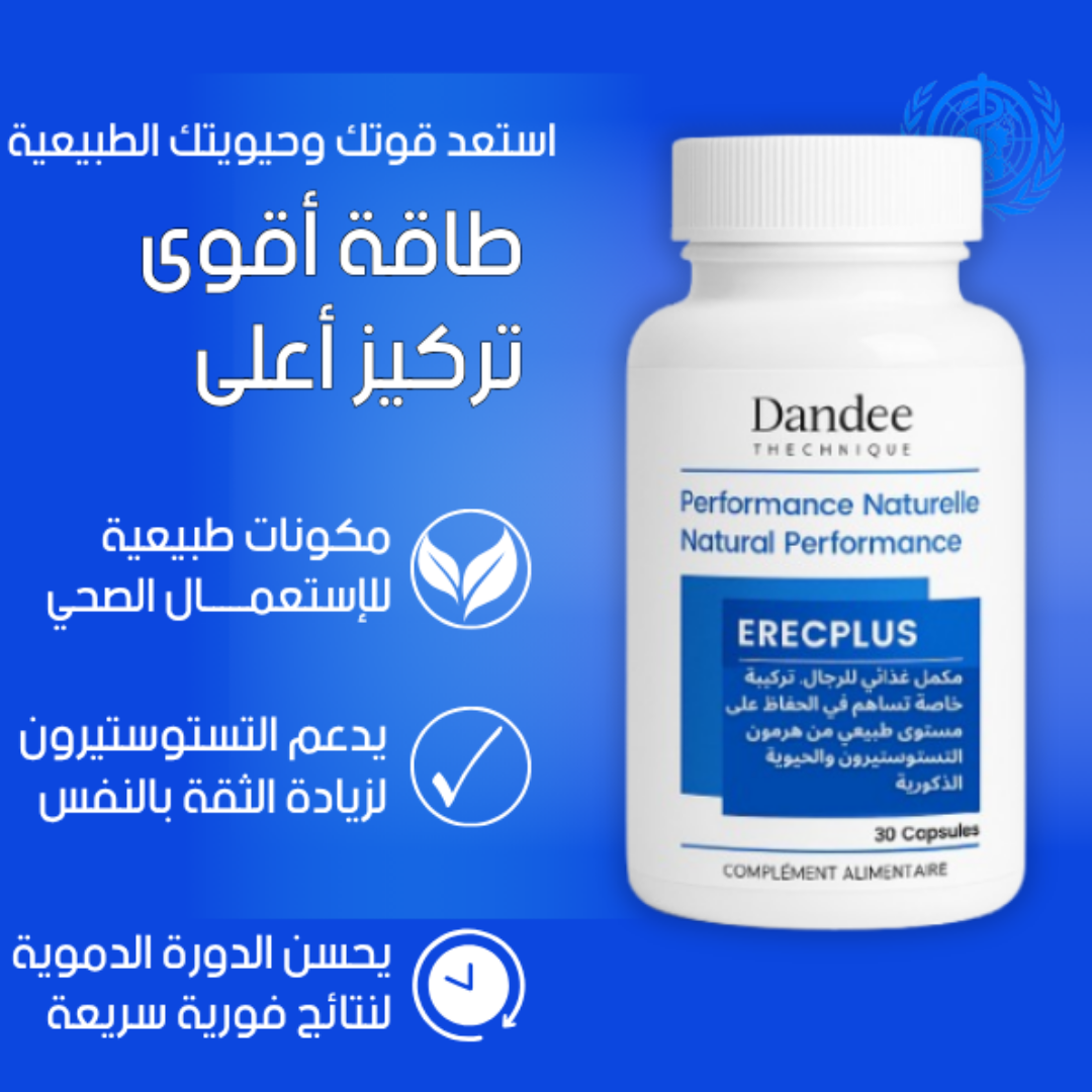 بزاف من الرجال كيعانيو من نقص الطاقة وضعف الأداء، وكيظنو أن الحل صعيب أو خطير. ERECPLUS هو مكمل طبيعي %100 صمم باش يرجع النشاط والثقة بطريقة آمنة وفعالة، بلا أي مواد كيميائية.
